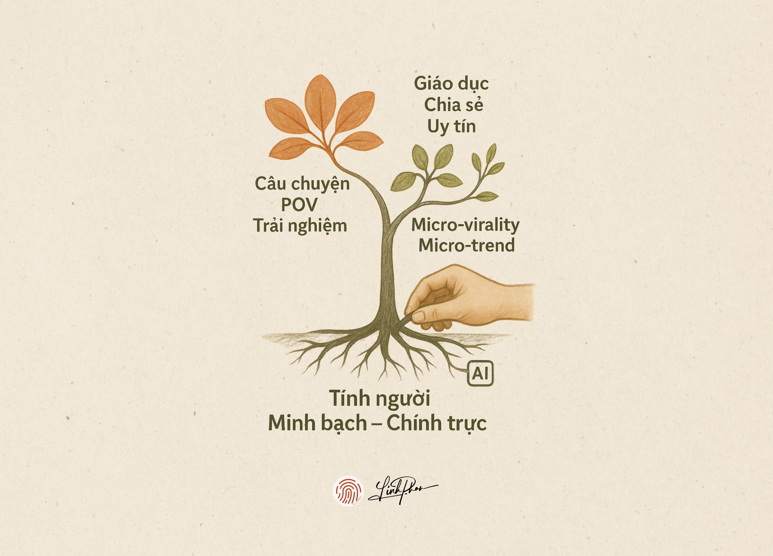 Nhưng theo lý thuyết “long tail” của Chris Anderson, khi thị trường lớn bị bão hòa, sự tăng trưởng sẽ chuyển vào những phân khúc nhỏ hơn, sâu hơn, và chính xác hơn. Đó là micro-trend và micro-virality: những làn sóng nhỏ nhưng có sức thấm lâu, tạo ra nhận thức, niềm tin và chuyển đổi vào đúng nhóm người cần nó.