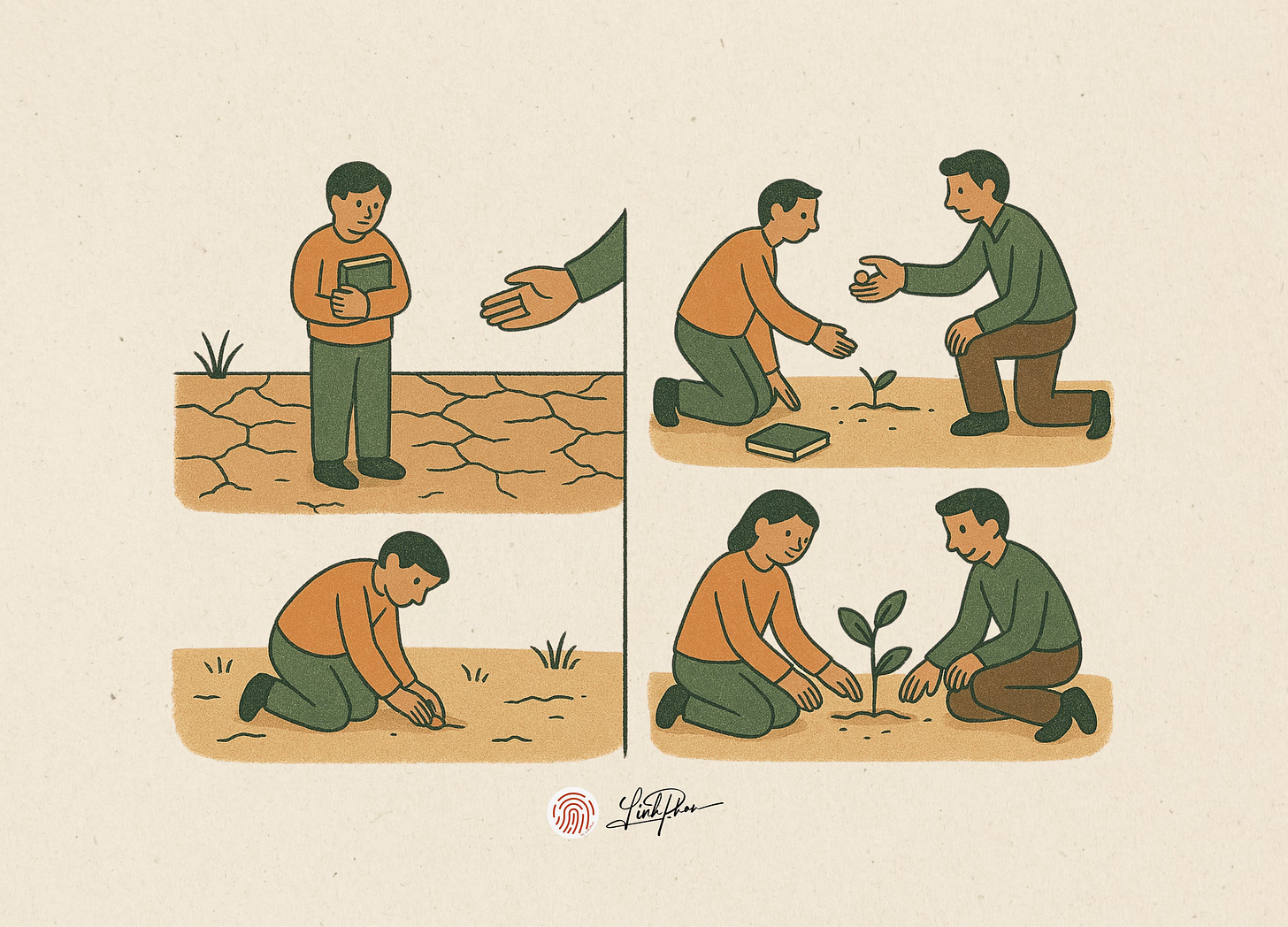 Mình học được điều này: sản phẩm đầu tiên nên được tạo ra trong lúc dạy, không phải trước đó. Và cách tốt nhất để dạy là bắt đầu từ nơi có người cần, chứ không phải nơi bạn muốn khoe sự chuẩn bị.