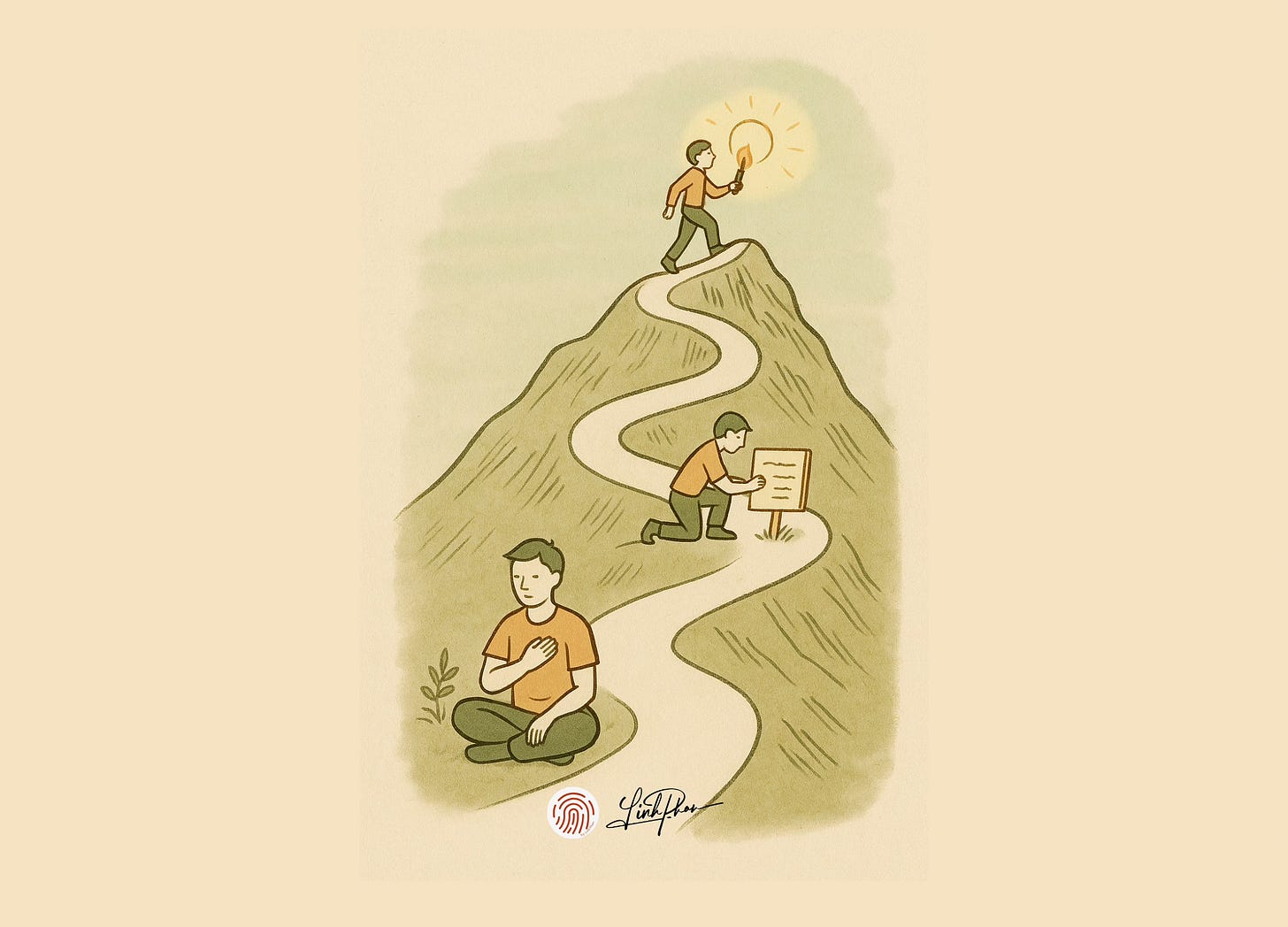 Hãy hình dung self-authorship như một cuộc leo núi. Bạn không thể nhảy từ chân núi lên đỉnh ngay lập tức. Mỗi giai đoạn là một trạm dừng, nơi bạn cần thời gian, sức lực và sự quan sát để thích nghi trước khi tiếp tục đi lên.